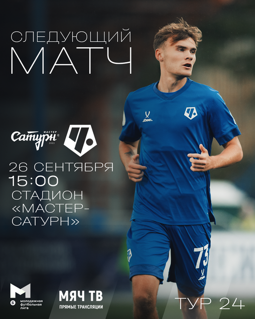 Готовимся к голевым подвигам на выезде – отправляемся на юго-восток Подмосковья! В пятницу, 26 сентября, в рамках 24-го тура молодёжка ФК «Чертаново» сыграет в Егорьевске с молодёжкой «Мастер-Сатурна». Встреча пройдёт на стадионе УОР №5 «Мастер-Сатурн» (Егорьевск, ул. Южная, д.2А). Начало в 15:00. Вход для болельщиков – свободный.