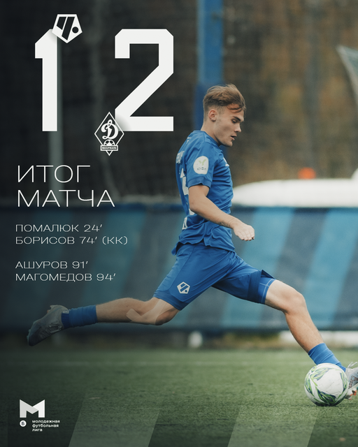 Молодёжка не проигрывала с июля – это была яркая жизнь: 8 побед подряд и ничья в предыдущем туре с «Кировцем». Встречу с махачкалинским «Динамо» начали активно и справедливо повели в счёте: после удара Александра Помалюка мяч в свои ворота вонзил Саид Седрединов.