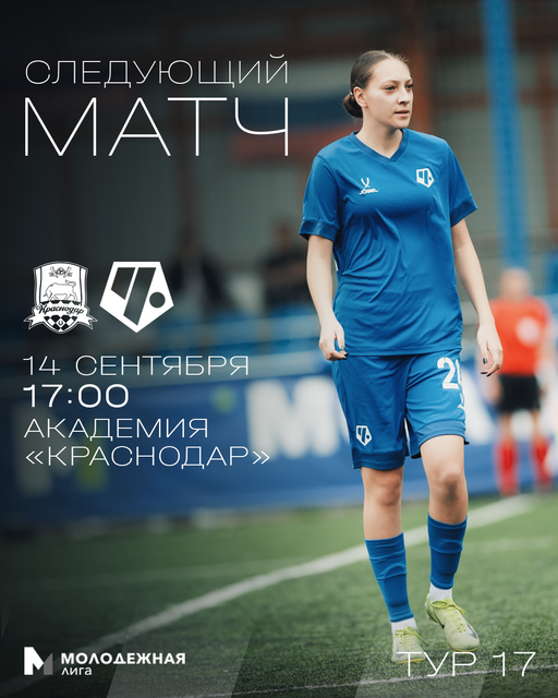 Краснодарки бьются за чемпионство в Молодёжной Лиге, а чертановки едут получать удовольствие от яркого солнца, южного воздуха и красивого футбола! В воскресенье, 14 сентября, в рамках 17-го тура (высший дивизион I) молодёжка ЖФК «Чертаново» сыграет на выезде с молодёжкой ЖФК «Краснодар». Встреча пройдёт на Малой арене Академии ФК «Краснодар» (Краснодар, ул. Героя Владислава Посадского, 15а). Начало в 17:00.