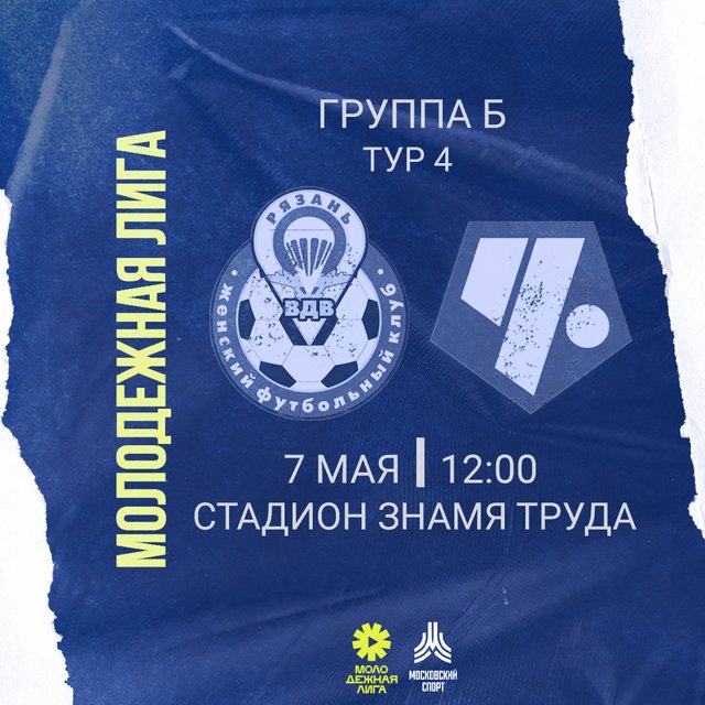 После первой победы в сезоне чертановская молодёжка, как и наша основа, сыграет с лидером турнира, который имеет максимум очков в Молодёжной Лиге – едем в гости к молодёжке «Рязани-ВДВ», но сыграем в подмосковном городе Орехово-Зуево.