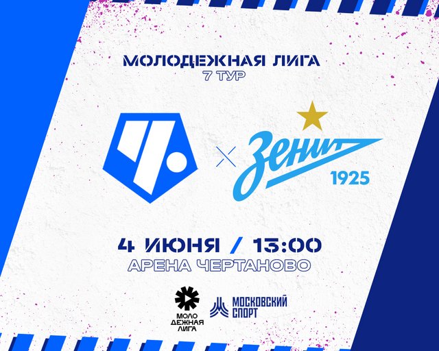 Турнир продолжается! В субботу, 4 июня, в рамках 7-го тура молодёжка ЖФК «Чертаново» сыграет дома с молодёжкой ЖФК «Зенит» (Санкт-Петербург). Встреча пройдёт на стадионе «Арена Чертаново» (Москва, Сумской проезд, д.26). Начало в 13:00. Матч пройдёт со зрителями – вход свободный. Приходите на матч молодёжки и оставайтесь на встречу главной команды с «Локомотивом» (начало в 17:30). Очень ждём поддержки – наши молодые футболистки этого достойны! Прямая трансляция пройдёт на канале Чертаново-ТВ в YouTube.
