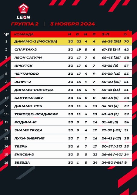 Завершён сезон в Группе 2 Второй Лиги Б! Золото забирает «Динамо-2» (бело-голубые переходят уровнем выше – в Группу «Серебро»); в медалях – «Спартак-2» и раменский «Леон Сатурн»; чертановцы финишировали на 5-м месте (в трёх очках от бронзы).