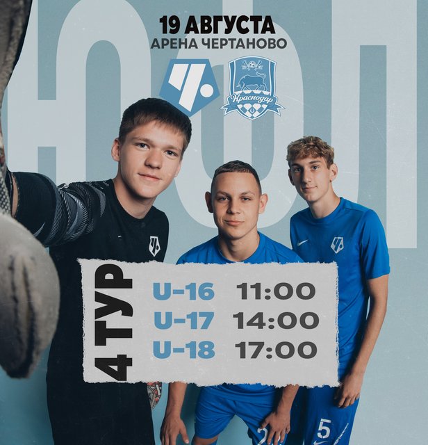 Продолжается сезон Юношеской Футбольной Лиги! Принимаем дома гостей с берегов Кубани – в рамках 4-го тура команды «Чертаново» сыграют с воспитанниками Академии ФК «Краснодар». Матчи пройдут в субботу, 19 августа, на стадионе «Арена Чертаново» (Сумской проезд, д.26).