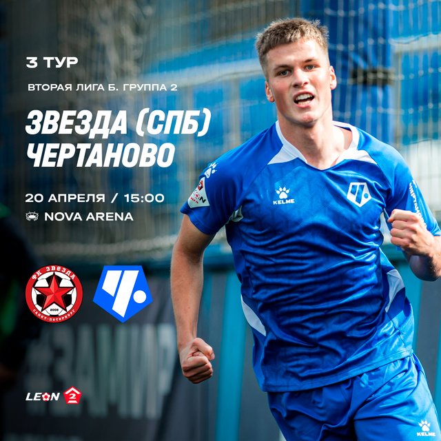 С юга Москвы на север Питера – играем на Гражданке! В субботу, 20 апреля, в рамках 3-го тура (из 30-ти в сезоне!) в Группе 2 Второй лиги Б ФК «Чертаново» сыграет на выезде со «Звездой» (Санкт-Петербург). Встреча пройдёт на стадионе «Nova Arena» (Санкт-Петербург, Гражданский проспект, д.100). Начало в 15:00. Вход для зрителей свободный – будете рядом, заходите, будет интересно!