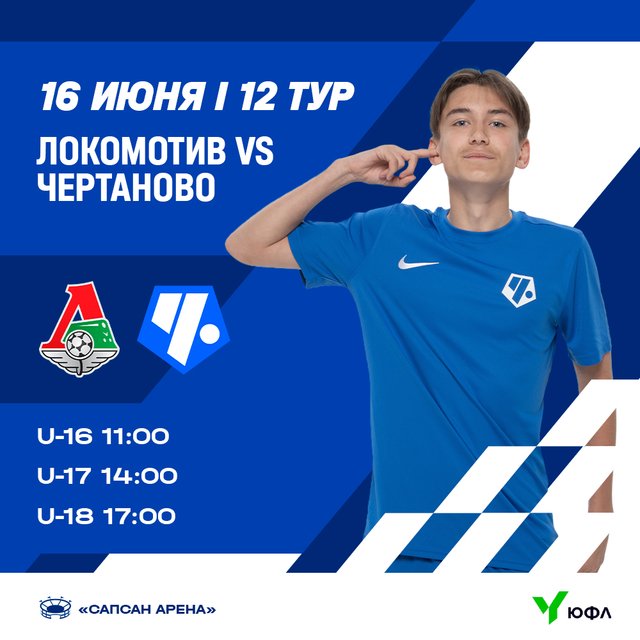 В рамках 12-го тура команды «Чертаново» отправятся в гости к воспитанникам Академии ФК «Локомотив». Матчи пройдут в воскресенье, 16 июня, на «Сапсан Арене» (ул. Большая Черкизовская, 125): ЮФЛ-3 – 11:00, ЮФЛ-2 – 14:00, ЮФЛ-1 – 17:00. Ждём вас!