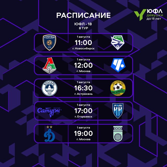 Следите за турнирной таблицей и календарем матчей на официальном сайте лиги. Прямые трансляции всех матчей в официальной группе ЮФЛ-Девушки в VK.