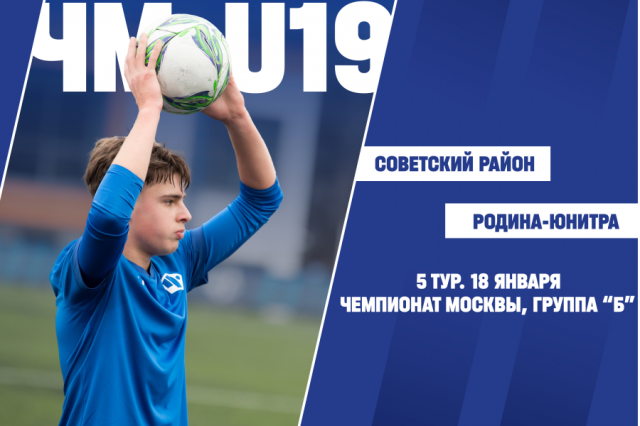 В воскресенье, 18 января, в рамках 5-го тура воспитанники «Советского района» сыграли с командой «Родина-Юнитра». Матч прощел на стадионе «Арене Чертаново» (Москва, Сумской проезд, 26). Начало в 10:00.