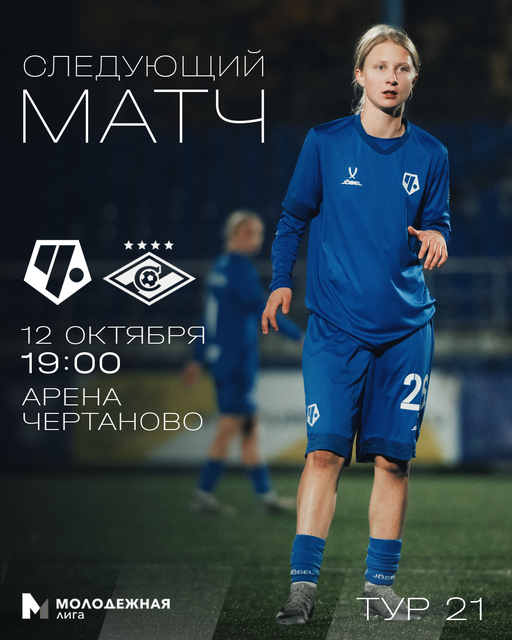 Чертановский футбол в Молодёжной Лиге – как он есть! В воскресенье, 12 октября, в рамках 21-го тура (высший дивизион I) молодёжка ЖФК «Чертаново» сыграет дома с молодёжкой ЖФК «Спартак». Встреча пройдёт на стадионе «Арена Чертаново» (Москва, Сумской проезд, 26). Начало в 19:00. Будет тепло, а местами даже горячо!