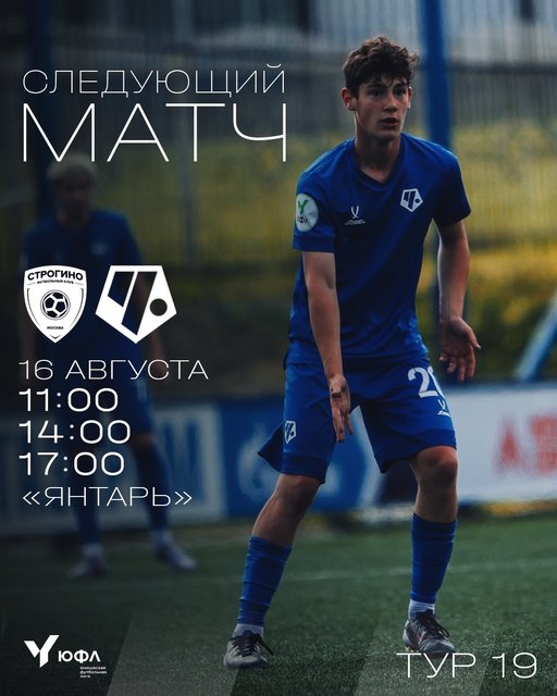В 19-м туре чертановцев ждет одно из самых принципиальных противостояний: отправляемся в гости к коллегам по Москомспорту – воспитанникам «Строгино»! Встречи пройдут в субботу, 16 августа, на стадионе «Янтарь» (ул. Маршала Катукова, д.26): ЮФЛ-3 – 11:00, ЮФЛ-2 – 14:00, ЮФЛ-1 – 17:00.