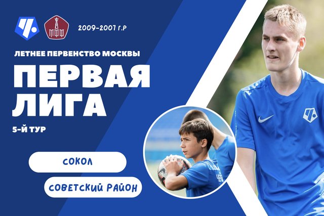В рамках 5-го тура Первой Лиги команды «Советский район» 2009-2007 г.р. сыграли с футболистами Академии «Сокол». Матчи прошли в субботу, 18 мая, на стадионе «Арена Сокол» (ул. Новорязанская, влад. 29А).