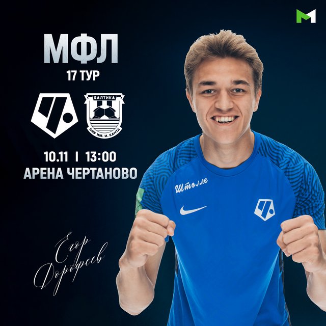 Калининградская молодёжка крайне неудачно стартовала в МФЛ: 3 ничьи и 6 поражений в девяти летних матчах. Победы пришли лишь осенью: в сентябре выиграли у «Сочи» (4:0) и «Ахмата» (4:1), а в минувшем 16-м туре одолели дома «Урал» (3:1). В турнирной таблице молодёжка «Балтики» идёт на 17-м месте (12 очков, +3=3-10, мячи 23:33). Лучшие бомбардиры: Артём Яшков и Артем Бабчук (оба 2005 г.р.) – по 4 мяча. Отметим, что в составе команды выступают два чертановских воспитанника: защитники Кирилл Лузгин (2004 г.р., 9 матчей, 1 гол) и Роман Сурмий (2005 г.р., 6 матчей, 1 гол).