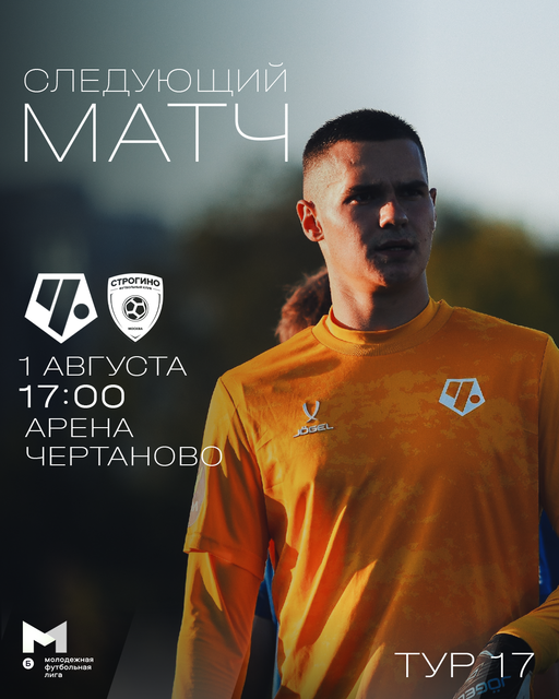Играем на районе! В пятницу, 1 августа, в рамках 17-го тура молодёжка ФК «Чертаново» принимает молодёжку «Строгино». Встреча пройдёт на стадионе «Арена Чертаново» (Москва, Сумской проезд, 26). Начало в 17:00. Выложимся на 100% – очень ждём поддержки!