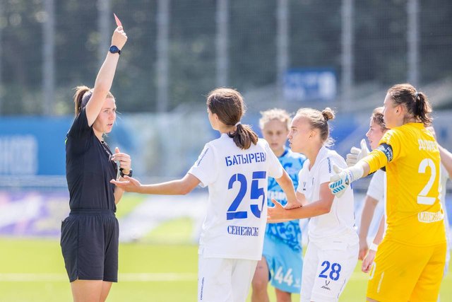 Петербурженки на правах хозяек выглядели активнее: пришлось потрудиться нашей обороне и вратарю Варваре Дудоровой – справились! Но в концовке тайма арбитр Екатерина Манченко была слишком строга к Ольге Лаптевой – усмотрев чрезмерную грубость в игровом единоборстве…