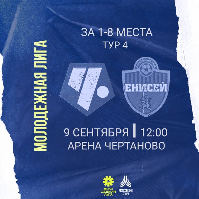 В субботу, 9 сентября, в рамках 4-го тура заключительного этапа (за 1-8 места) молодёжка ЖФК «Чертаново» сыграет дома с молодёжкой ЖФК «Енисей» (Красноярск). Встреча пройдёт на стадионе «Арена Чертаново» (Москва, Сумской проезд, д.26). Начало в 12:00. Просим понять и простить: данный матч пройдёт без зрителей, но в дальнейшем мы вернёмся к стандартному режиму посещения.