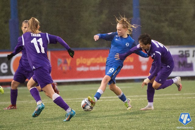 Количество угловых стало двузначным ещё в первом тайме, моментов было предостаточно, но счёт удвоился лишь перед самым перерывом: 16-летняя Яна Свистунова хитрым черпаком вывела свою ровесницу Киру Петухову на ударную позицию, а форвард на долю секунды опередила вратаря, проткнув мяч в сетку.