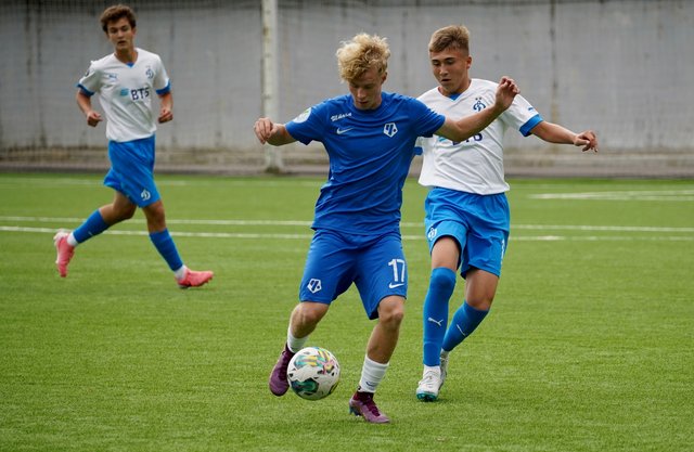 Встреча с «Динамо» в ЮФЛ-2 вышла тяжелой. В первом тайме больше голевых ситуаций было у бело-голубых, но мы тоже старались напрягать оборону хозяев: особо активничали Егор Голдаченко, Евгений Кузьмин и Евгений Гурский.