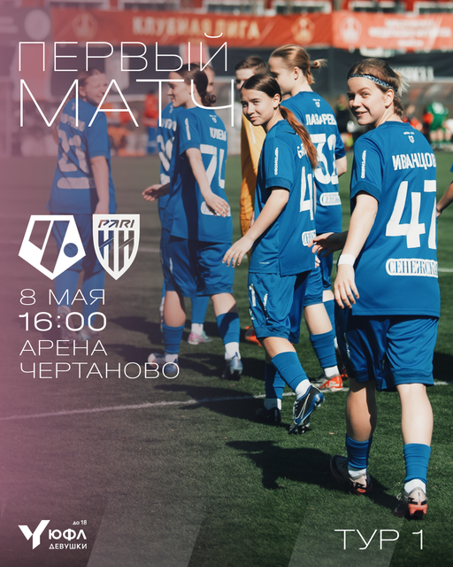 Наши футболистки уверенно прошли сито отбора на предварительном этапе – стартует финальный турнир: впереди 18 туров! В четверг, 8 мая, в рамках 1-го тура ЮФЛ-Девушки U-18 команда девушек «Чертаново» 2008/09 г.р. сыграет дома с ЖФК «Пари Нижний Новгород». Встреча пройдёт на стадионе «Арена Чертаново» (Москва, Сумской проезд, д.26). Начало в 16:00. Вход для болельщиков – свободный. Будет интересно!
