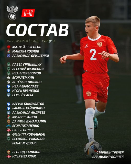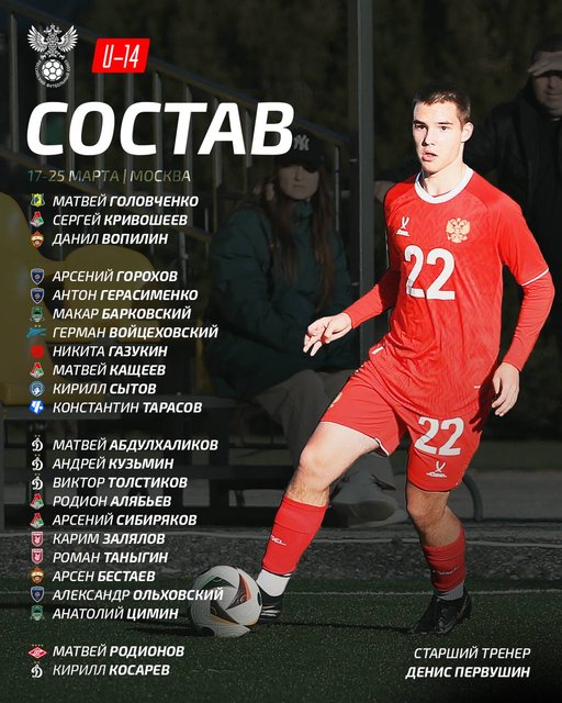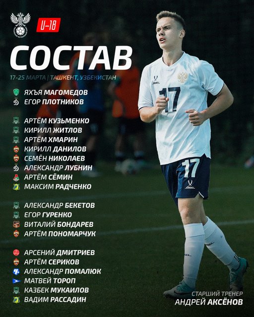 Юношеская сборная U-18 (игроки 2007 г.р.) тренировалась в Ташкенте: в расположение национальной команды отправился игрок молодёжной команды «Чертаново» – нападающий Александр Помалюк! Подробности на сайте РФС!