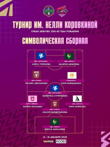 В финале турнира в Казани младшая команда преподнесла сюрприз, обыграв старшую! В символическую сборную турнира попали четверо наших футболисток: Маргарита Гельманова (2014), Варвара Чертанова (2013), Анна Тупикова (2014) и Аксинья Шолохова (2013). Всех поздравляем – все молодцы!